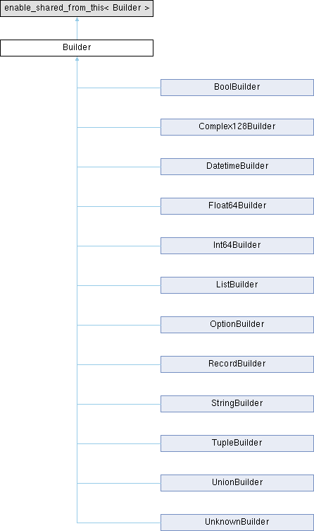 Implemented in BoolBuilder, Complex128Builder, DatetimeBuilder, Float64Builder, Int64Builder, ListBuilder, OptionBuilder, RecordBuilder, StringBuilder, TupleBuilder, UnionBuilder, and UnknownBuilder.